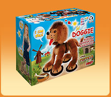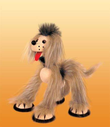 Tento chlupatý pejsek má neustále nadšený výraz a když ho dáte do pohybu, půvabně kráčí. Má 6 provázků a rozebíratelné vodítko. Je 30cm vysoký